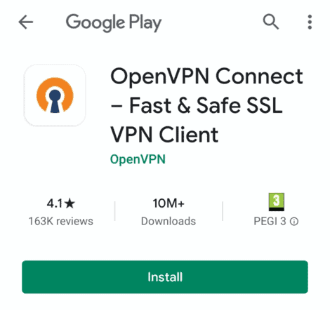 - 1: Zainstaluj „OpenVPN” z Play Store. Ta aplikacja pozwoli Ci połączyć się z VPN MyPolishVPN.